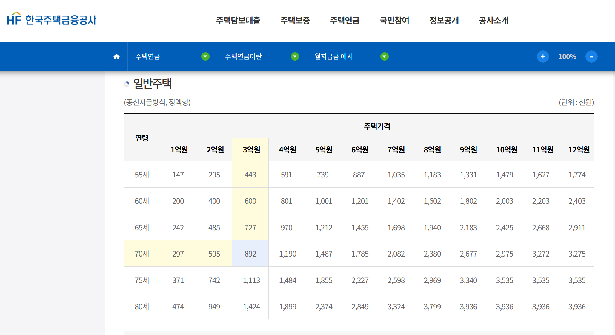 2. "5억 집 맡기면 월 얼마?" (최신 수령액표)
