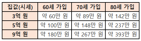 금액: 70세 기준 5억 집이면 월 148만 원 확보.
